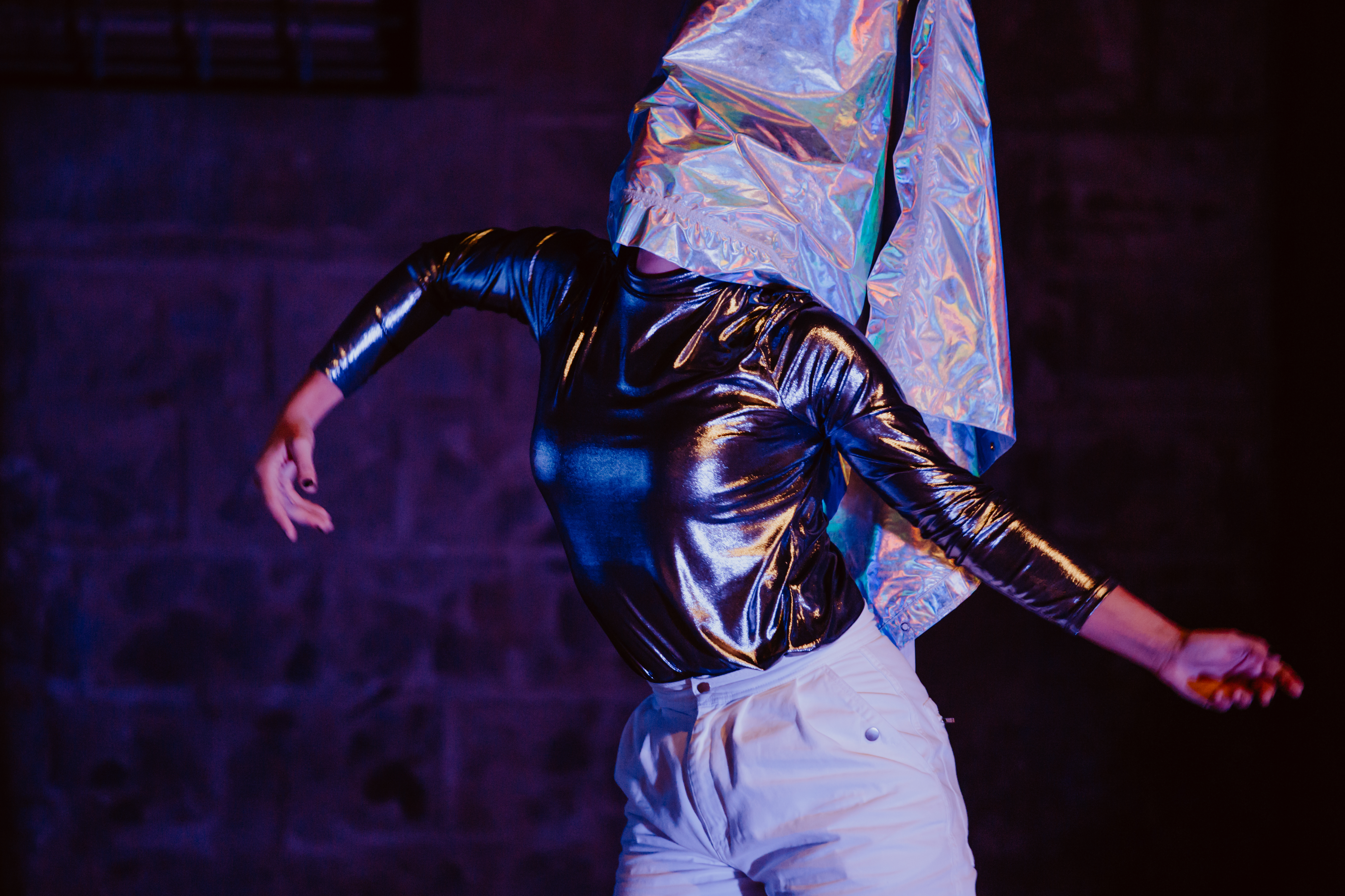 En lo negro de la noche is a performance where text and body meet in public space. The text, written live and projected in laser, is a concise, poetic account of the movement of a photon, which touches, crosses the skin of a moving body. Wave-particle duality is a special physical characteristic of light, of photons, which pass through us, but also allow us to see.
